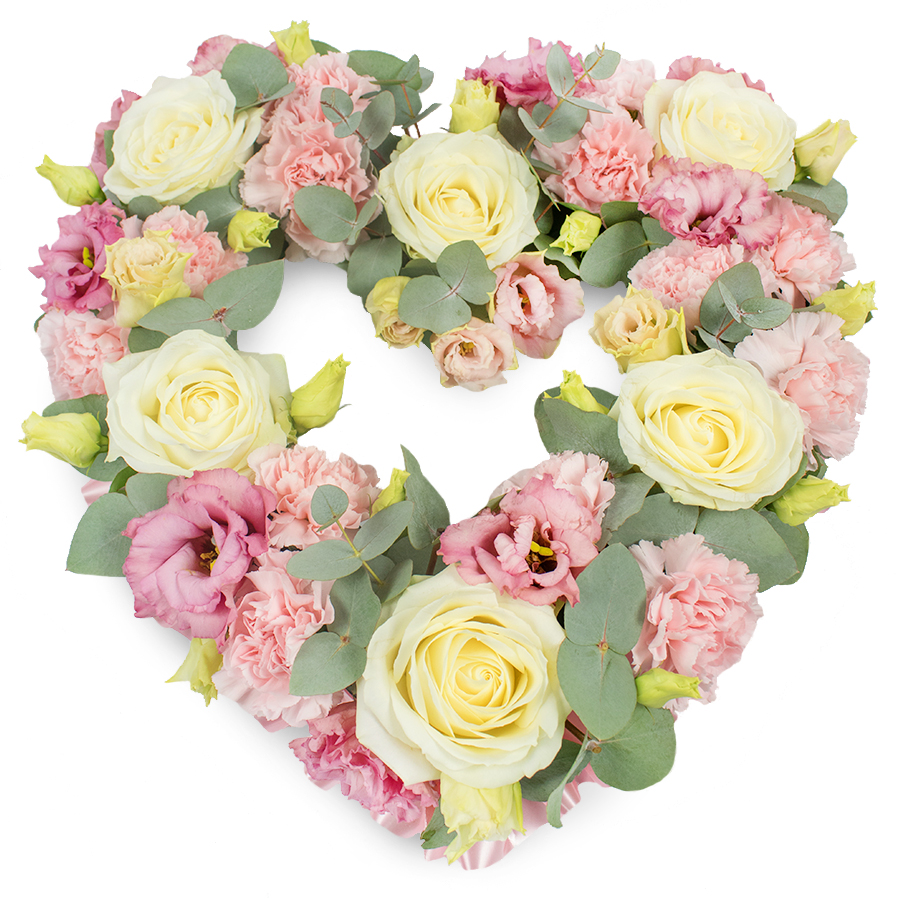 Express your heartfelt sentiments with our sophisticated tribute bouquet, meticulously arranged with pristine white roses, charming pink carnations, elegant pink lisianthus, and aromatic eucalyptus leaves. Each flower is hand-selected to guarantee freshness and enduring beauty.